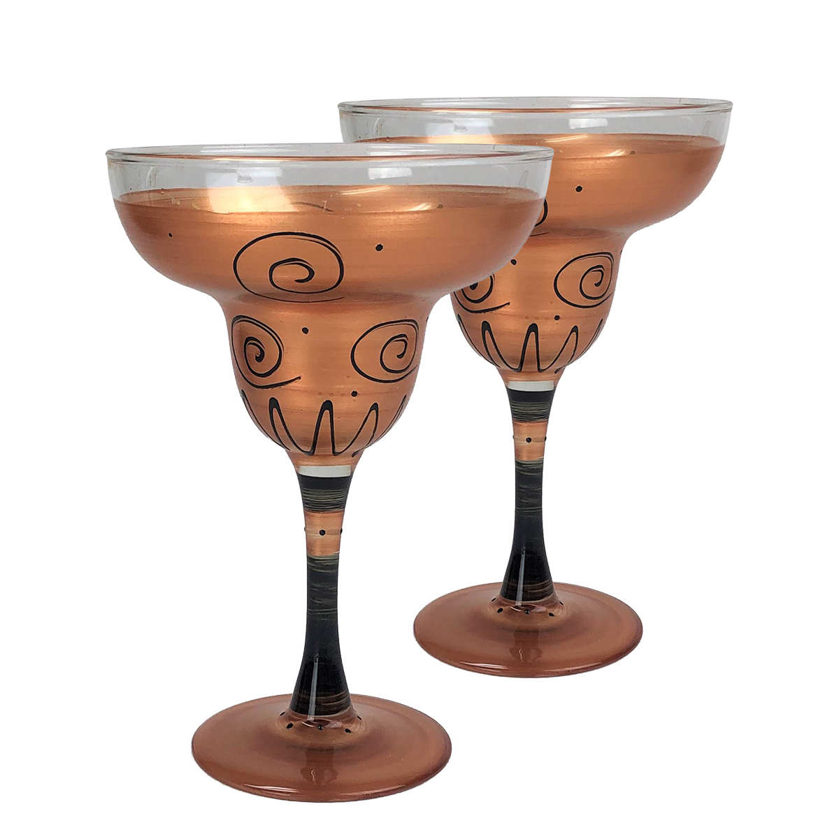 Each of our margarita glasses are unique and special. Carefully and lovingly hand painted by the Artistic Team at Golden Hill Studio. This handsome collection is vermeil gold and accented with black curls and dots. We think it has a 'lodge' feel to it but really suits any decor. A very elegant collection! Golden Hill Studio is not just about fine glassware but about fine living! The studio is in a farmhouse that dates to the 1860's on 100 acres of peaceful and serene country side. A daily inspiration to beauty and nature. All photography is done either inside Golden Hill's beautifully restored farmhouse or outside in the extensive and lovely gardens!! Please hand wash.