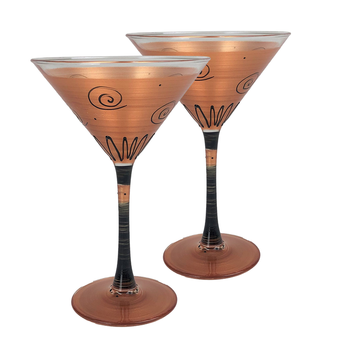 Each of our martini glasses are unique and special. Carefully and lovingly hand painted by the Artistic Team at Golden Hill Studio. This handsome collection is vermeil gold and accented with black curls and dots. We think it has a 'lodge' feel to it but really suits any decor. A very elegant collection! Golden Hill Studio is not just about fine glassware but about fine living! The studio is in a farmhouse that dates to the 1860's on 100 acres of peaceful and serene country side. A daily inspiration to beauty and nature. All photography is done either inside Golden Hill's beautifully restored farmhouse or outside in the extensive and lovely gardens!! Please hand wash.
