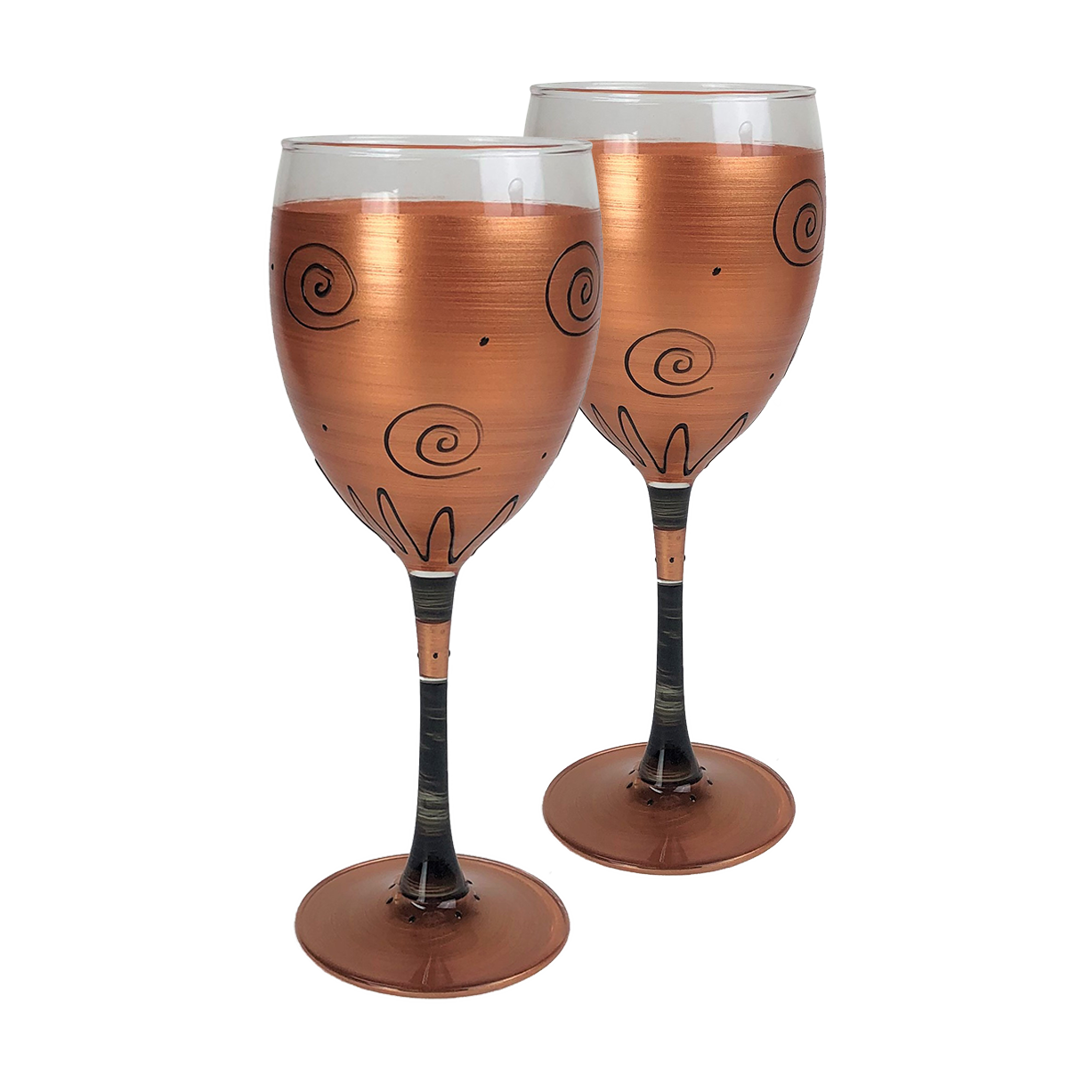 Each of our wine glasses are unique and special. Carefully and lovingly hand painted by the Artistic Team at Golden Hill Studio. This handsome collection is vermeil gold and accented with black curls and dots. We think it has a 'lodge' feel to it but really suits any decor. A very elegant collection! Golden Hill Studio is not just about fine glassware but about fine living! The studio is in a farmhouse that dates to the 1860's on 100 acres of peaceful and serene countryside. A daily inspiration to beauty and nature. All photography is done either inside Golden Hill's beautifully restored farmhouse or outside in the extensive and lovely gardens!! Please hand wash.