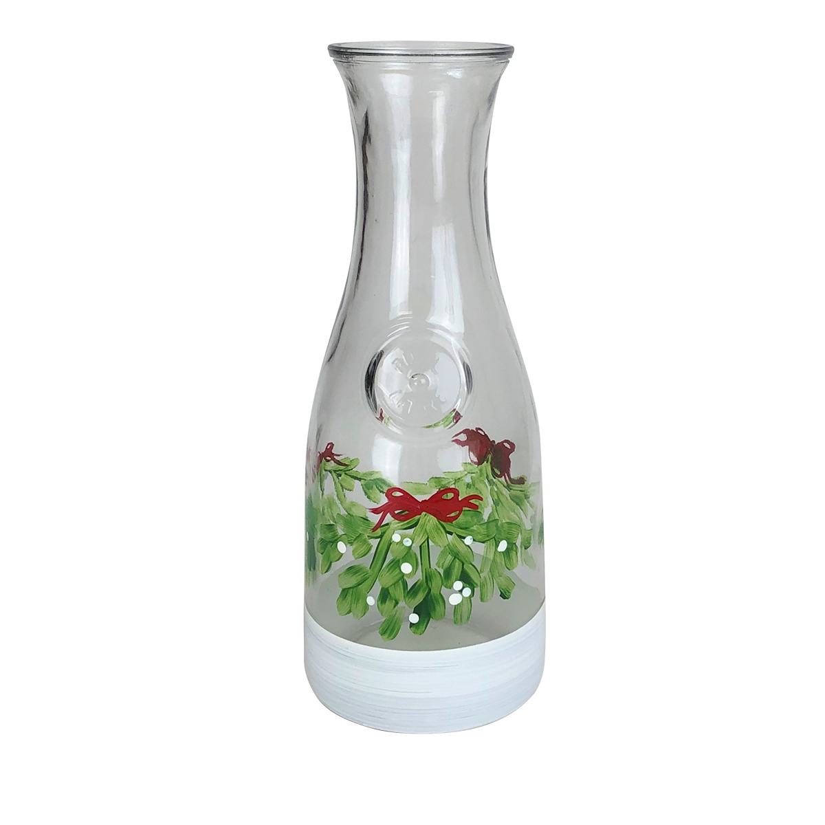 Each of our carafes are unique and special. Carefully and lovingly hand painted by the Artistic Team at Golden Hill Studio. Our Mistletoe Collection features pretty red berries on mistletoe branches and will make holiday celebrations very special! Put it over that special person's head for a Mistletoe Kiss! Golden Hill Studio is not just about fine glassware but about fine living! Please Hand Wash