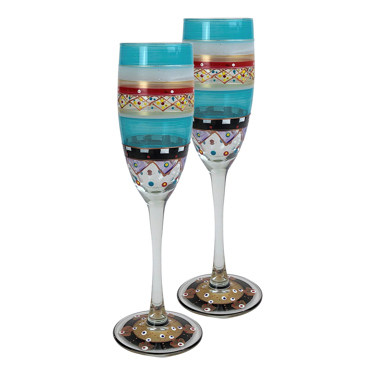 Each of our champagne flutes are unique and special. Carefully and lovingly hand painted by the Artistic Team at Golden Hill Studio. Our Moroccan Mosaic Carnival is one of our most popular collections. And just like it’s name it is colorful and fun and dresses up any event. Golden Hill Studio is not just about fine glassware but about fine living! The studio is in a farmhouse that dates to the 1860's on 100 acres of peaceful and serene country side. A daily inspiration to beauty and nature. All photography is done either inside Golden Hill's beautifully restored farmhouse or outside in the extensive and lovely gardens!! Please hand wash.