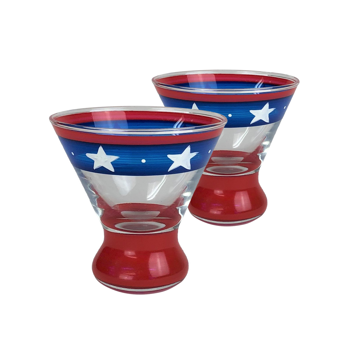 What better way to celebrate all of the summer holidays. Not just for the 4th of July but for all of the holidays. Start off the summer season with Memorial Day and end it with Labor Day. Nothing like the Red, White & Blue!! This cosmos glass will certainly make you think to celebrate and to be thankful!!! Not only do our glasses celebrate the USA they are proudly hand painted in the USA as well, by American artists. |