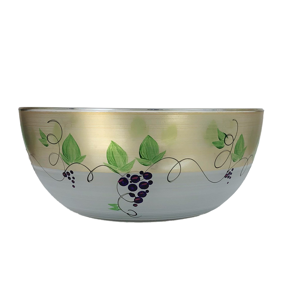 Each of our 11" serving salad bowls are unique and special. Carefully and lovingly hand painted by the Artistic Team at Golden Hill Studio. Our Napa Grapes n' Vines Collection features a pretty bunch of grapes on their vines....just waiting to be harvested! Golden Hill Studio is not just about fine glassware but about fine living! The studio is in a farmhouse that dates to the 1860's on 100 acres of peaceful and serene country side. A daily inspiration to beauty and nature. All photography is done either inside Golden Hill's beautifully restored farmhouse or outside in the extensive and lovely gardens!! Please hand wash.
