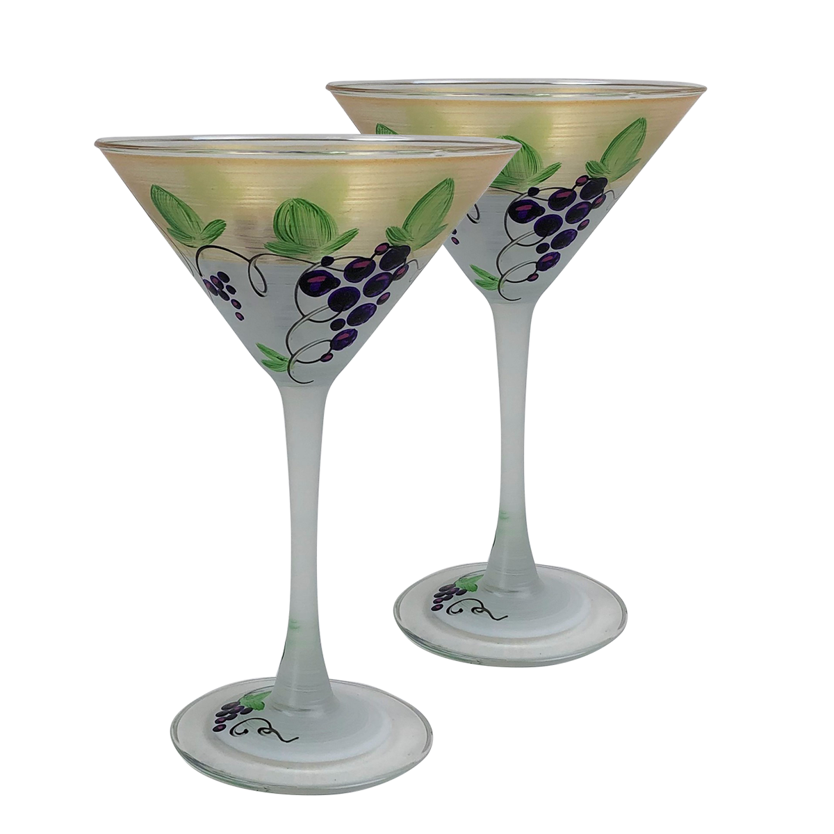 Each of our martini glasses are unique and special. Carefully and lovingly hand painted by the Artistic Team at Golden Hill Studio. Our Napa Grapes n' Vines Collection features a pretty bunch of grapes on their vines....just waiting to be harvested! Golden Hill Studio is not just about fine glassware but about fine living! The studio is in a farmhouse that dates to the 1860's on 100 acres of peaceful and serene country side. A daily inspiration to beauty and nature. All photography is done either inside Golden Hill's beautifully restored farmhouse or outside in the extensive and lovely gardens!! Please hand wash.