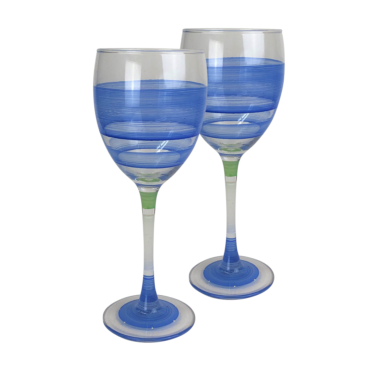Cape Cod Cottage Stripe Blue Wine Set of 2