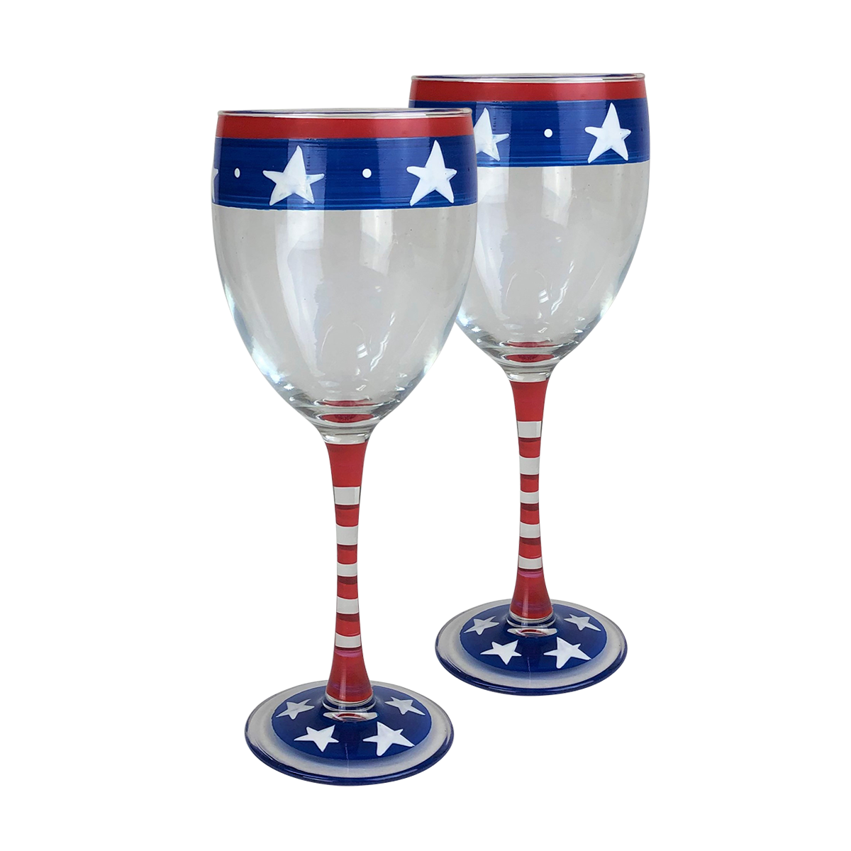 What better way to celebrate all of the summer holidays.  Not just for the 4th of July but for all of the holidays. Start off the summer season with Memorial Day and end it with Labor Day.  Nothing like the Red, White & Blue!!  This wine glass will certainly make you think to celebrate and to be thankful!!! Not only do our glasses celebrate the USA they are proudly hand painted in the USA as well, by American artists.
