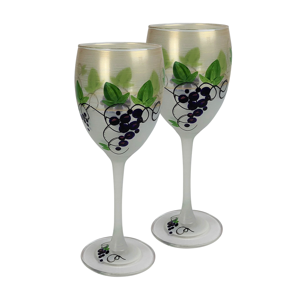 Each of our wine glasses are unique and special. Carefully and lovingly hand painted by the Artistic Team at Golden Hill Studio. Our Napa Grapes n' Vines Collection features a pretty bunch of grapes on their vines....just waiting to be harvested! Golden Hill Studio is not just about fine glassware but about fine living! The studio is in a farmhouse that dates to the 1860's on 100 acres of peaceful and serene countryside. A daily inspiration to beauty and nature. All photography is done either inside Golden Hill's beautifully restored farmhouse or outside in the extensive and lovely gardens!! Please hand wash.