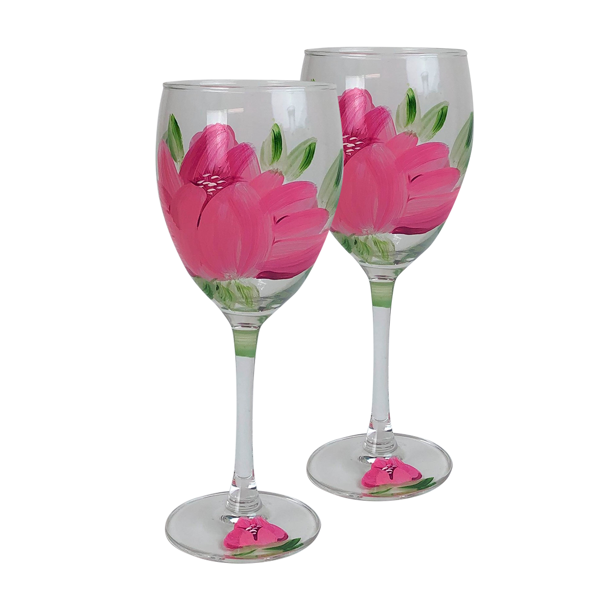 Each of our wine glasses are unique and special. Carefully and lovingly hand painted by the Artistic Team at Golden Hill Studio. This lovely collection features a pretty pink Peony. It is so bright and cheery and suits any decor! Golden Hill Studio is not just about fine glassware but about fine living! The studio is in a farmhouse that dates to the 1860's on 100 acres of peaceful and serene countryside. A daily inspiration to beauty and nature. All photography is done either inside Golden Hill's beautifully restored farmhouse or outside in the extensive and lovely gardens!! Please hand wash.