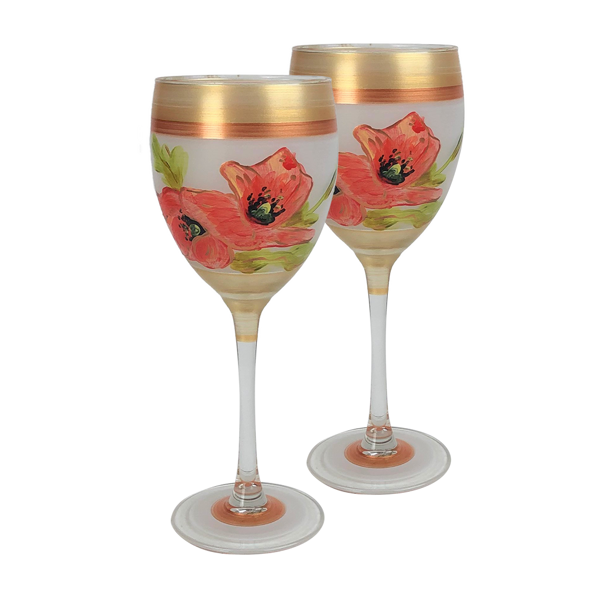 Each of our wine glasses are unique and special. Carefully and lovingly hand painted by the Artistic Team at Golden Hill Studio. This lovely collection features a pretty Poppy. It is so bright and cheery and suits any decor! Golden Hill Studio is not just about fine glassware but about fine living! The studio is in a farmhouse that dates to the 1860's on 100 acres of peaceful and serene countryside. A daily inspiration to beauty and nature. All photography is done either inside Golden Hill's beautifully restored farmhouse or outside in the extensive and lovely gardens!! Please hand wash.