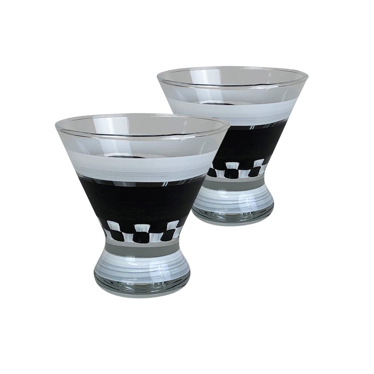 This cosmos glass set features black and white checks bordering black chalk paint. A great way to personalize all of the special days of your life. Also, a perfect gift for any occasion. Be creative!! Proudly hand painted in the USA by American Artists. Please hand wash.