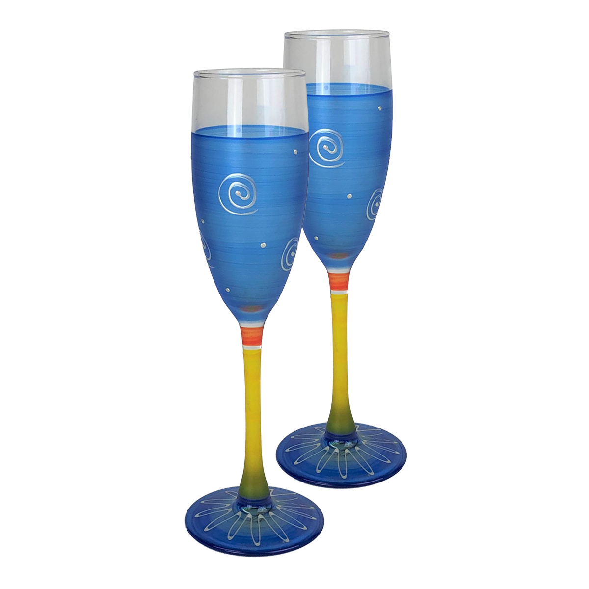 Each of our champagne flute glasses are unique and special. Carefully and lovingly hand painted by the Artistic Team at Golden Hill Studio. It is perfect for anytime of the year. There are 8 featured colors and so much fun to mix and match! No need for wine charms....just pick your color. Golden Hill Studio is not just about fine glassware but about fine living! The studio is in a farmhouse that dates to the 1860's on 100 acres of peaceful and serene country side. A daily inspiration to beauty and nature. All photography is done either inside Golden Hill's beautifully restored farmhouse or outside in the extensive and lovely gardens!! Please hand wash.