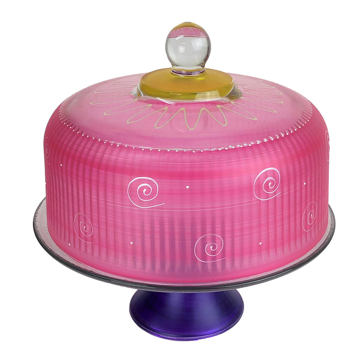 Each of our cake dome are unique and special. Carefully and lovingly hand painted by the Artistic Team at Golden Hill Studio. It is perfect for anytime of the year. There are 8 featured colors and so much fun to mix and match! No need for wine charms....just pick your color. Golden Hill Studio is not just about fine glassware but about fine living! The studio is in a farmhouse that dates to the 1860's on 100 acres of peaceful and serene countryside. A daily inspiration to beauty and nature. All photography is done either inside Golden Hill's beautifully restored farmhouse or outside in the extensive and lovely gardens!! Please hand wash.