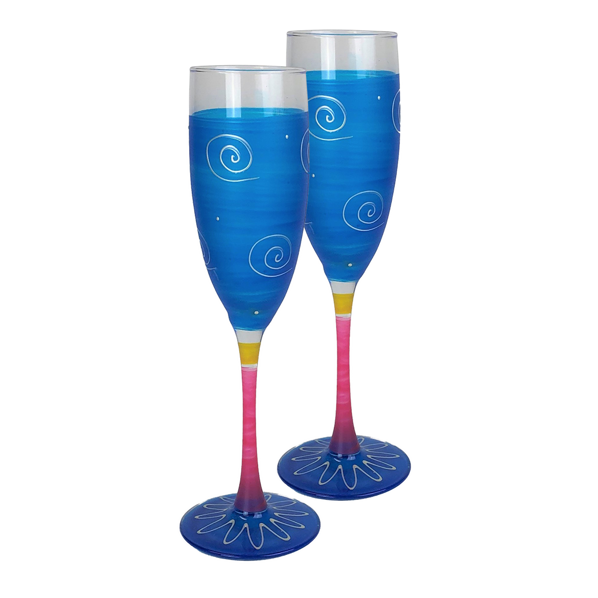 Each of our champagne flute glasses are unique and special. Carefully and lovingly hand painted by the Artistic Team at Golden Hill Studio. It is perfect for anytime of the year. There are 8 featured colors and so much fun to mix and match! No need for wine charms....just pick your color. Golden Hill Studio is not just about fine glassware but about fine living! The studio is in a farmhouse that dates to the 1860's on 100 acres of peaceful and serene country side. A daily inspiration to beauty and nature. All photography is done either inside Golden Hill's beautifully restored farmhouse or outside in the extensive and lovely gardens!! Please hand wash.