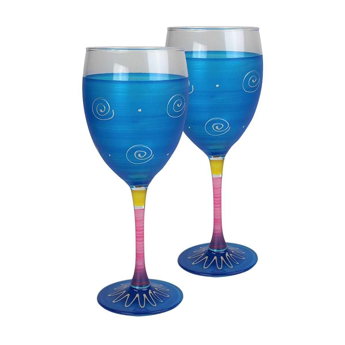Each of our wine glasses are unique and special. Carefully and lovingly hand painted by the Artistic Team at Golden Hill Studio. It is perfect for anytime of the year. There are 8 featured colors and so much fun to mix and match! No need for wine charms....just pick your color. Golden Hill Studio is not just about fine glassware but about fine living! The studio is in a farmhouse that dates to the 1860's on 100 acres of peaceful and serene countryside. A daily inspiration to beauty and nature. All photography is done either inside Golden Hill's beautifully restored farmhouse or outside in the extensive and lovely gardens!! Please hand wash.