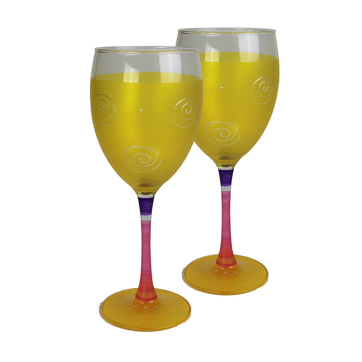 Each of our wine glasses are unique and special. Carefully and lovingly hand painted by the Artistic Team at Golden Hill Studio. It is perfect for anytime of the year. There are 8 featured colors and so much fun to mix and match! No need for wine charms....just pick your color. Golden Hill Studio is not just about fine glassware but about fine living! The studio is in a farmhouse that dates to the 1860's on 100 acres of peaceful and serene countryside. A daily inspiration to beauty and nature. All photography is done either inside Golden Hill's beautifully restored farmhouse or outside in the extensive and lovely gardens!! Please hand wash.