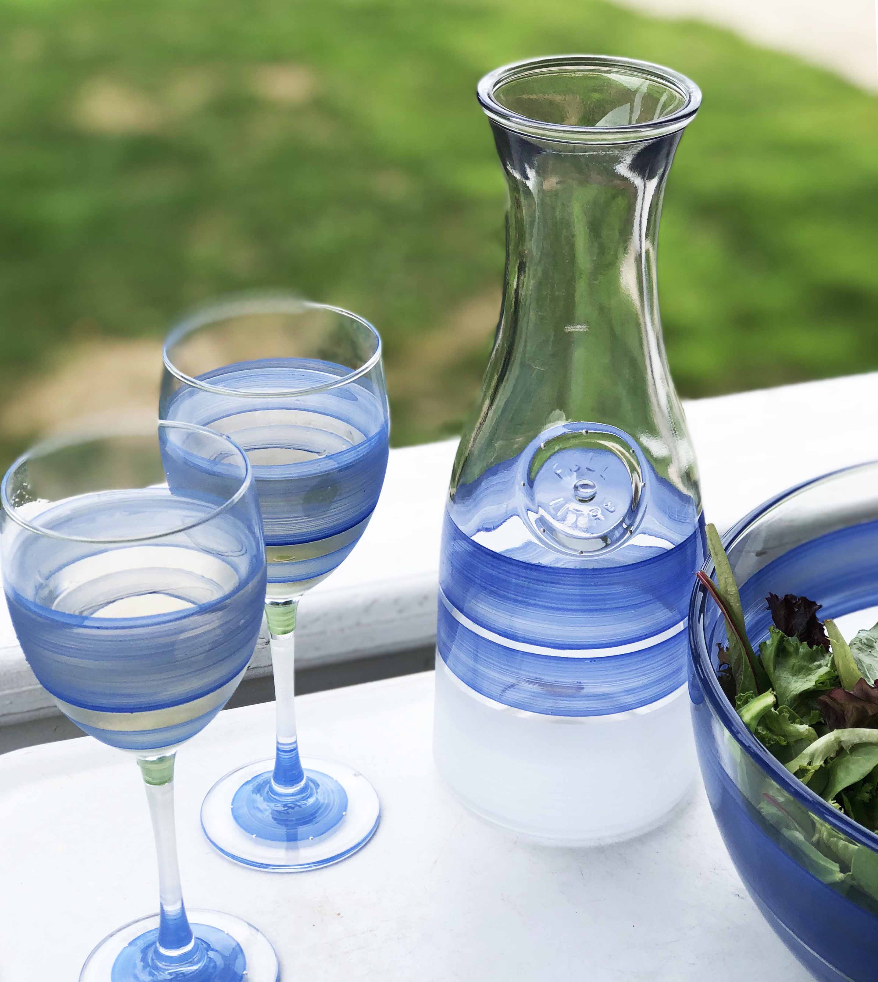 Each of our wine carafes are unique and special. Carefully and lovingly hand painted by the Artistic Team at Golden Hill Studio. Our Cape Cod Cottage Collection is another of our favorite collections. It is perfect for anytime of the year. So colorful and fun! Golden Hill Studio is not just about fine glassware but about fine living! The studio is in a farmhouse that dates to the 1860's on 100 acres of peaceful and serene country side. A daily inspiration to beauty and nature. All photography is done either inside Golden Hill's beautifully restored farmhouse or outside in the extensive and lovely gardens!! Please hand wash.