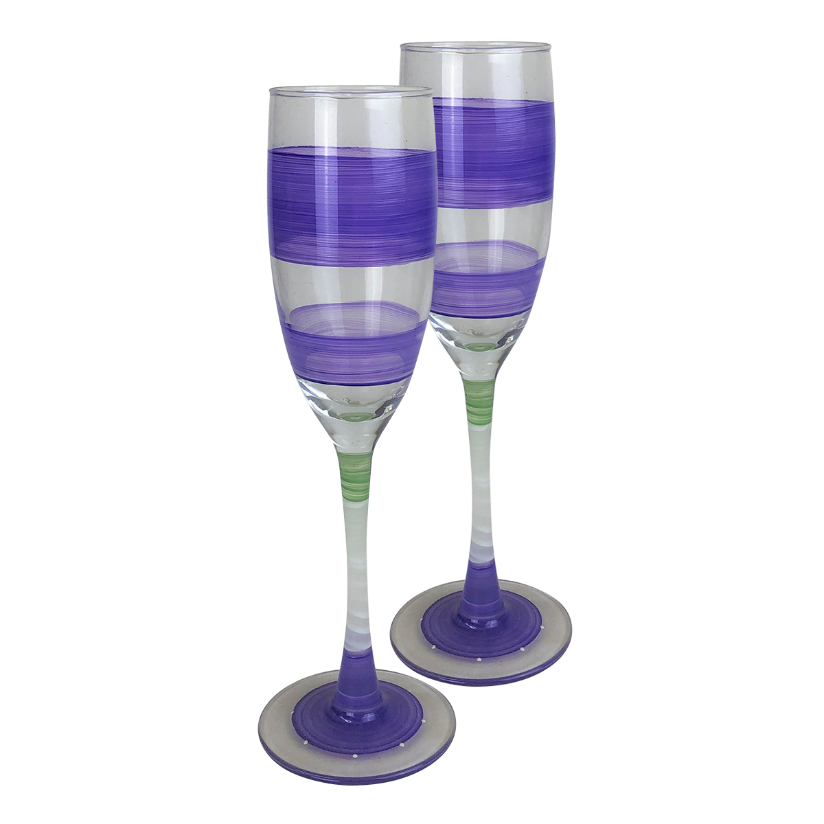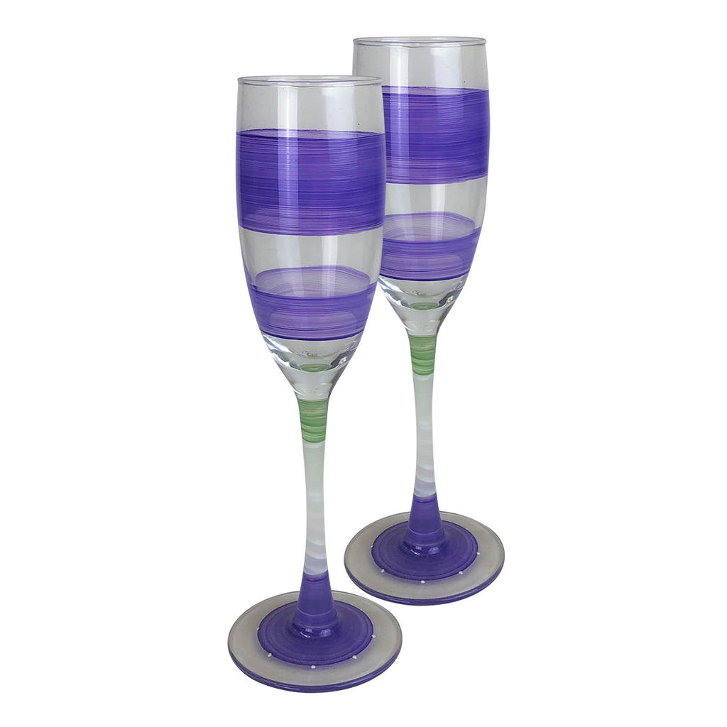 Cape Cod Cottage Stripe Purple Champagne Set of 2
